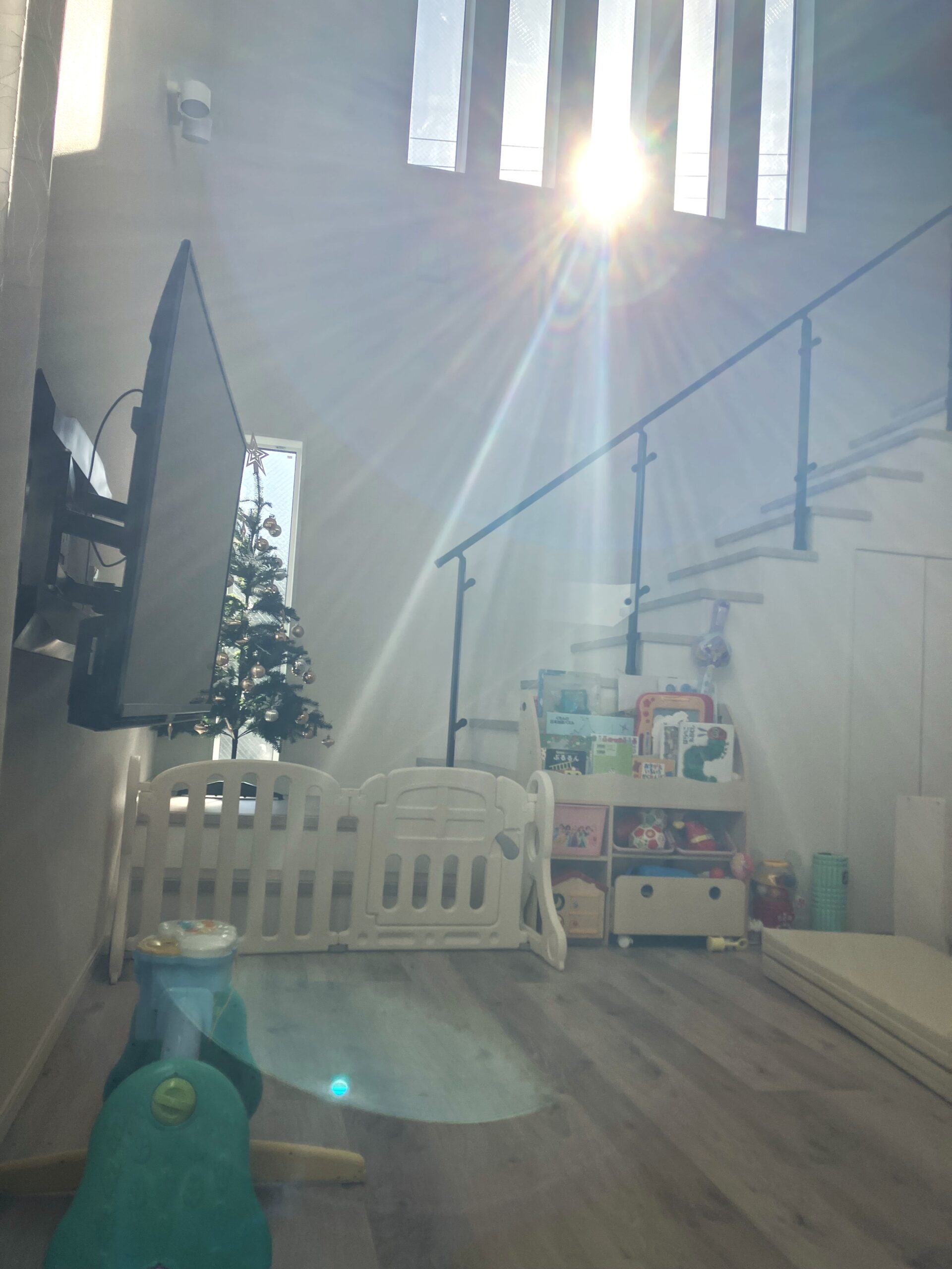 日当たりの良い吹き抜けリビングで、お子様たちがのびのびと遊んでいる姿を拝見し、こちらまで大変嬉しかったです